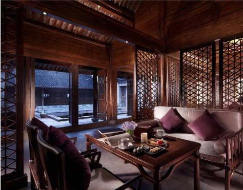 伴著那精致雕琢的花窗的是游廊上悠悠的玉笛之聲,清澈,悠揚的聲色帶給人的是對于那段歷史的無盡追思和懷想,天邊的那輪新月彎彎,勾起的是離人縷縷的愁思,廊上那盞清茶喚起的是歸人絲絲的眷念,造型大氣典雅的中式家具是歷史的懷念和追溯。簡單時尚的內室格局則強調的是一種內室文化的豐富感覺。