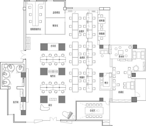 ▄設(shè)計(jì)風(fēng)格定位: 此案例要求簡(jiǎn)約、時(shí)尚,所以應(yīng)盡量利用簡(jiǎn)潔的建筑手法,避免采用過去的造型,繁瑣的細(xì)部裝飾,過多過濃的色彩點(diǎn)綴。頂面采用礦棉板吊頂,地面采用米黃色地磚鋪貼,隔斷統(tǒng)一使用透明玻璃加磨砂,所有的隔斷都沒有隔到頂,整個(gè)辦公空間顯得更寬敞明亮。我們應(yīng)該創(chuàng)造性的解決客戶的要求,營(yíng)造一個(gè)符合企業(yè)品質(zhì)并且是舒適、健康、富有人性的辦公環(huán)境,使企業(yè)的精神文化在各個(gè)角度體現(xiàn)出來。