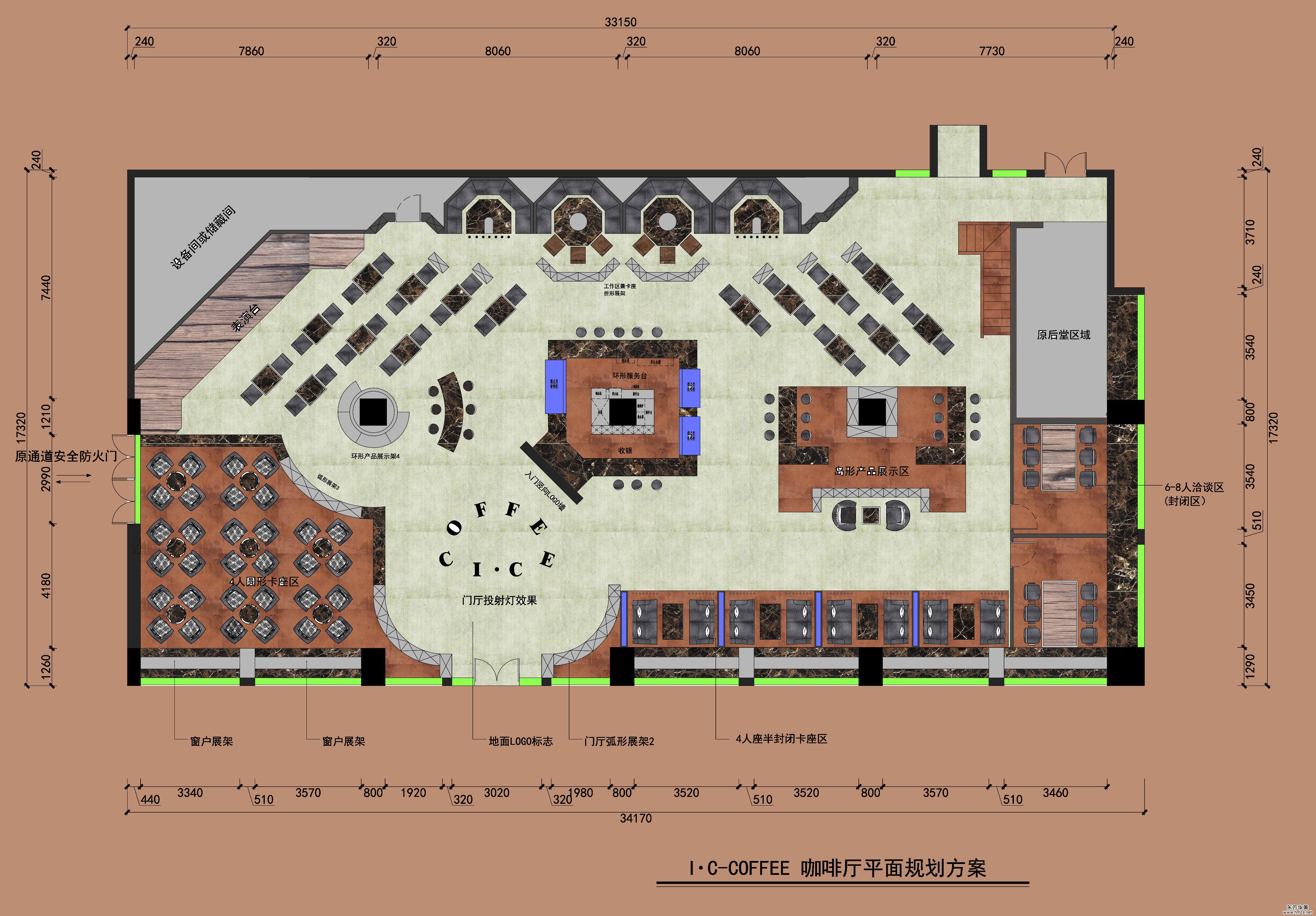 ▄設(shè)計(jì)需求: 主題定調(diào):IT行業(yè)科技類創(chuàng)業(yè)型群體/偏向文藝類型,輕音樂(lè)式咖啡廳; 功能分區(qū):滿足各類型群體聚會(huì)方式,大致分為環(huán)型服務(wù)臺(tái)功能區(qū)、四人圓桌共享交流區(qū)、四人卡座半敞開(kāi)式聚會(huì)區(qū)、6-10人卡座交流區(qū)、密封式會(huì)客區(qū)、公共2人區(qū)、表演區(qū)、夾層團(tuán)體休閑區(qū)。